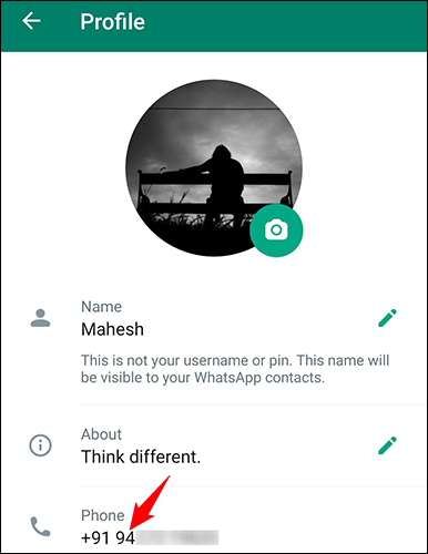 在“个人资料”页面的“电话”部分,您将看到与您的 WhatsApp 帐户相关联的号码。这是 WhatsApp 用于您的特定帐户的号码。