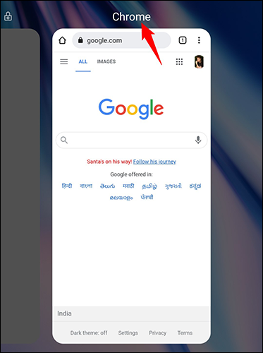 在 Android 上,在手机屏幕底部,点击或按下最近使用的应用程序按钮。在列表中找到 Chrome 并向上滑动以将其关闭。