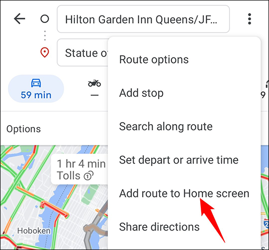 在 Android 上,您可以添加到主屏幕的路线的快捷方式。然后,当您点击此快捷方式时,您的路线将直接在 Google 地图中打开。