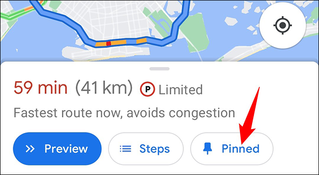 在同一页面的底部,点击“Pin”选项。这会将您当前的路线添加到固定路线列表中。
