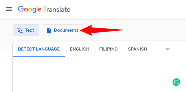 在网站顶部,单击“文档”,因为您要翻译 PDF 文档。