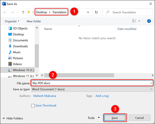 要使用 Microsoft Word 翻译您的 PDF,首先,打开文件资源管理器(Windows) 或Finder (Mac) 并找到 PDF 文件夹。