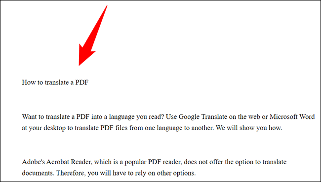 Adobe 的 Acrobat Reader 是一种流行的 PDF 阅读器,不提供翻译文档的选项。因此,您将不得不依赖其他选项,例如 Word 或 Google 翻译。