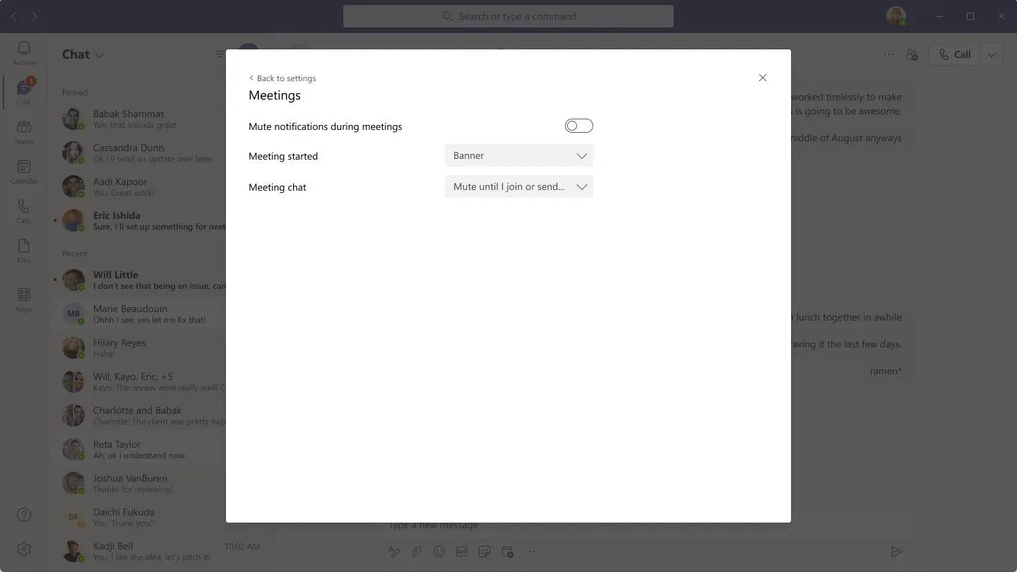 “用户将能够在会议期间将通知静音,从而有助于在会议期间集中注意力。用户可以选择将所有会议或每个会议的通知静音,” 微软表示。