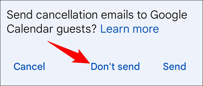 Google 日历会询问您是否愿意通过电子邮件通知活动参与者取消活动。要发送该电子邮件,请单击“发送”。否则,请单击“不发送”。