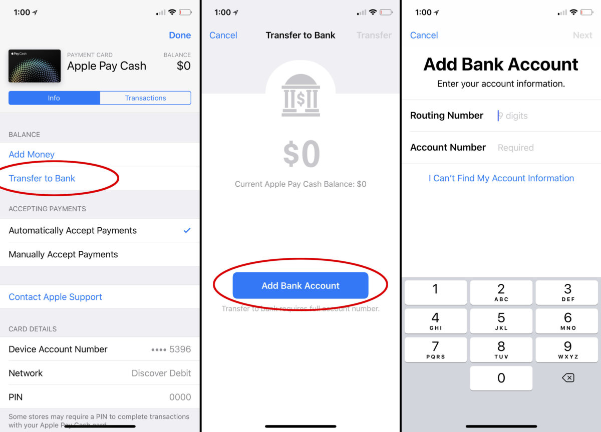如果要将资金从Apple Pay Cash虚拟卡转移到银行,则需要输入一个帐号。