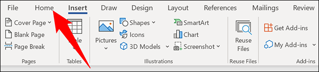 在 Word 顶部的功能区中,单击“插入”选项卡。