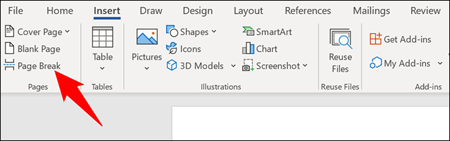 在“插入”选项卡上,在最左侧的“页面”部分中,单击“分页符”。