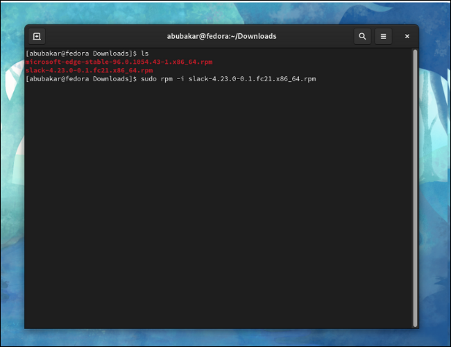 如果您更喜欢使用命令行(也称为终端),您可以使用该命令安装 RPM 包rpm。