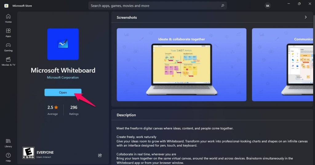 - 从Microsoft Store下载并安装Microsoft Whiteboard ,或从 Microsoft 官方网站下载应用程序。