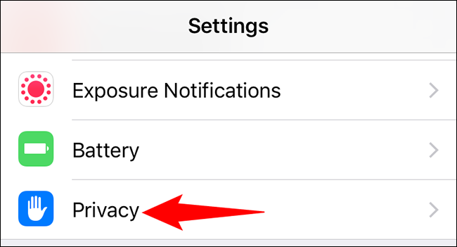 在“设置”中,向下滚动一点,然后点击“隐私”。
