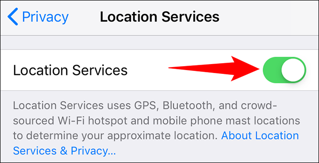 打开 iPhone 上的设置,然后进入隐私 > 定位服务。确保顶部的“定位服务”开关已打开。