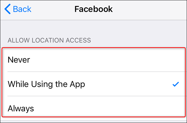 - 从不:要永远不允许此应用使用您的位置数据,请选择此选项。