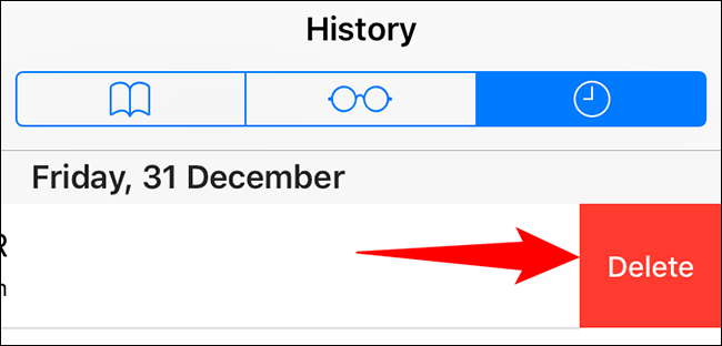 您将看到您的 Safari 浏览历史记录。在这里,在要删除的项目上向左滑动,然后点击“删除”。