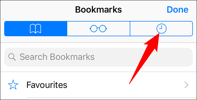 在“书签”屏幕的顶部,点击“历史记录”(时钟图标)。