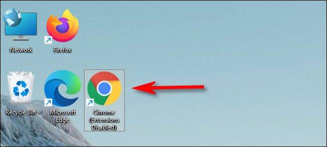 您的新“Chrome (Extensions Disabled)”快捷方式将出现在您的桌面上。您也可以将此桌面移动到 PC 上的其他位置(但遗憾的是,您无法将其拖到 Windows 11 中的“开始”菜单或任务栏)。