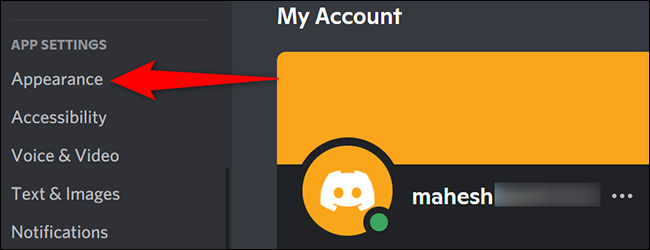 您将在左侧看到“用户设置”侧边栏。在此边栏中,从“应用程序设置”部分中,选择“外观”。
