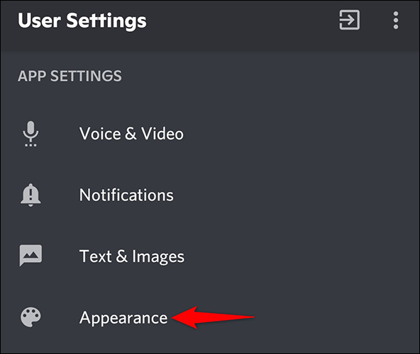 您将看到“用户设置”页面。在这里,在“应用程序设置”部分,点击“外观”。