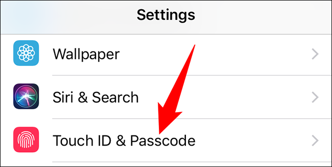 在我们的示例中,我们将选择“Touch ID & Passcode”选项。