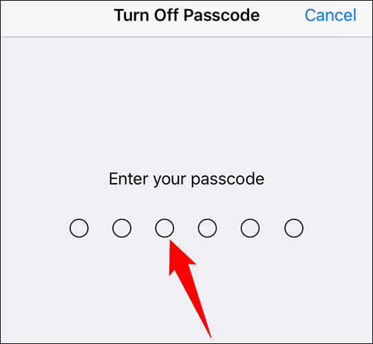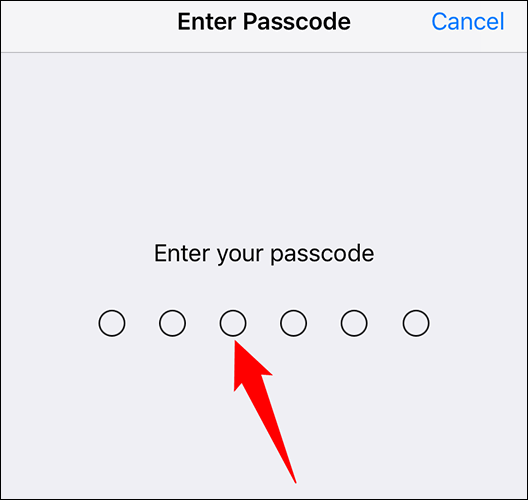 在“输入密码”屏幕上,输入您当前的 iPhone 密码。