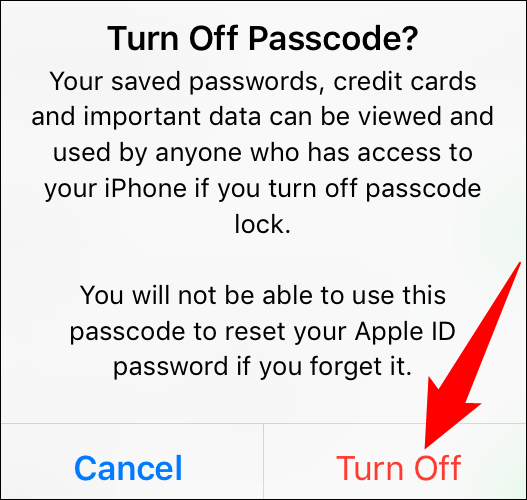 要在 iPhone 上禁用密码,您必须知道当前密码以及Apple ID 的密码。您将输入这些详细信息以关闭密码。如果您忘记了密码,请查看我们的指南以了解您有哪些选项。