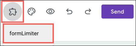 从 Google Workspace Marketplace 安装插件后,您可以通过点击表单顶部的插件图标并选择“formLimiter”来访问它。然后,在小弹出框中选择“设置限制”。