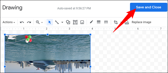 当您对翻转的图像感到满意并且想要将其添加回文档时,在“绘图”窗口的右上角,单击“保存并关闭”。