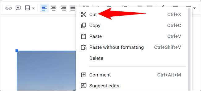在文档中,找到要翻转的图像。然后右键单击此图像并选择“剪切”。