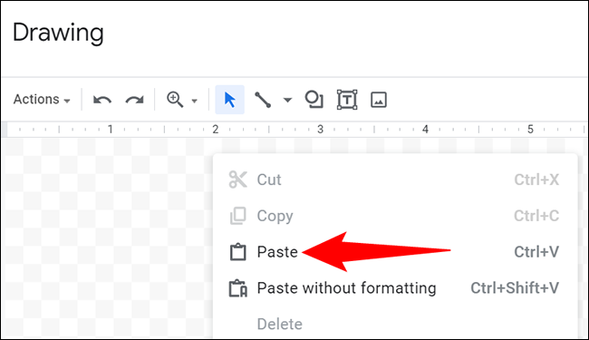 在打开的“绘图”窗口中,右键单击主画布上的任意位置,然后从菜单中选择“粘贴”。您将在此处看到您的图像。