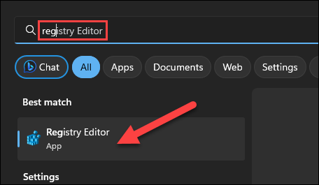 首先,打开“开始”菜单并搜索“注册表”以查找并打开“注册表编辑器”。