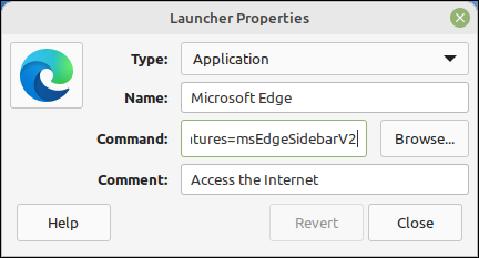您还可以在使用的桌面环境中编辑 Edge 启动器。将标志添加到命令字段,当您从那里启动 Edge 时,它也将生效。