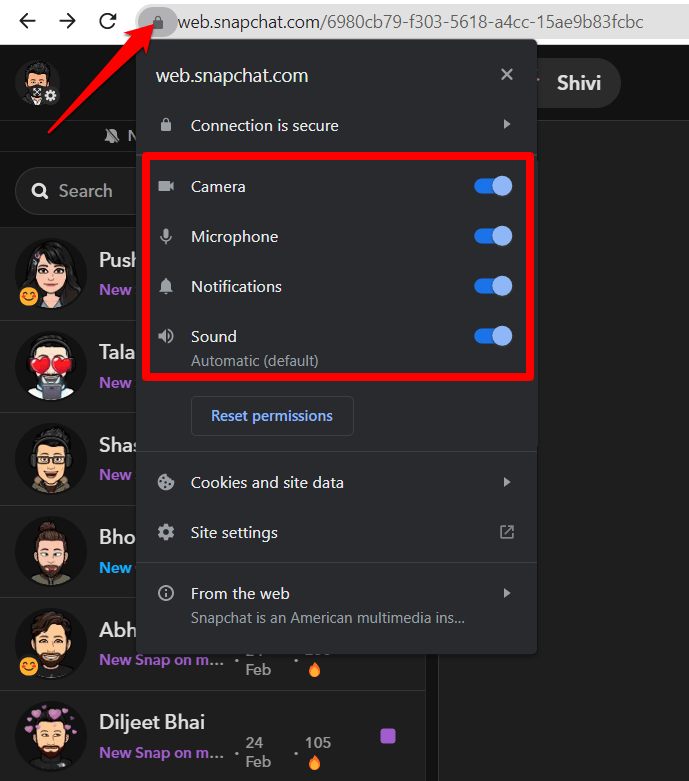 - 转到 web.snapchat.com