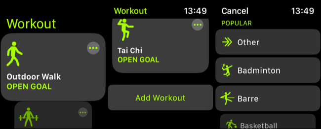 您选择的体能训练现在将显示在体能训练列表中。您还可以删除不使用的活动,方法是向左滑动并点按显示的红色“X”。