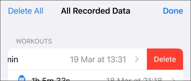 找到您要删除的体能训练,然后向左滑动。点击“删除”按钮删除条目。