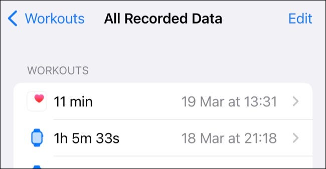 使用“健康”,启动应用程序,然后前往浏览>活动>锻炼。向下滚动到屏幕底部,然后点击“显示所有数据”选项。