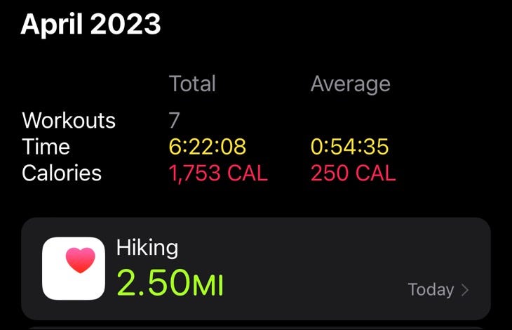 您可以参考您过去的活动数据来确定您在所选锻炼中燃烧了多少能量。例如,如果您通常在 280 英里的徒步旅行中燃烧大约 2.5 卡路里的热量,那么您应该记录 5 英里步行的两倍。您也可以使用像这样的能量消耗计算器。