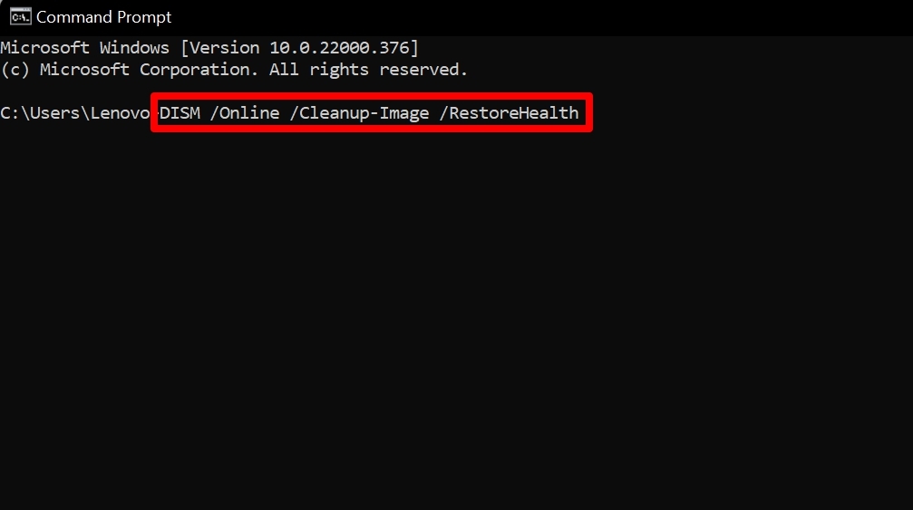 - 此外,您还可以使用 DISM 工具对损坏的文件执行扫描。在命令提示符下,逐个输入以下命令并执行它们。