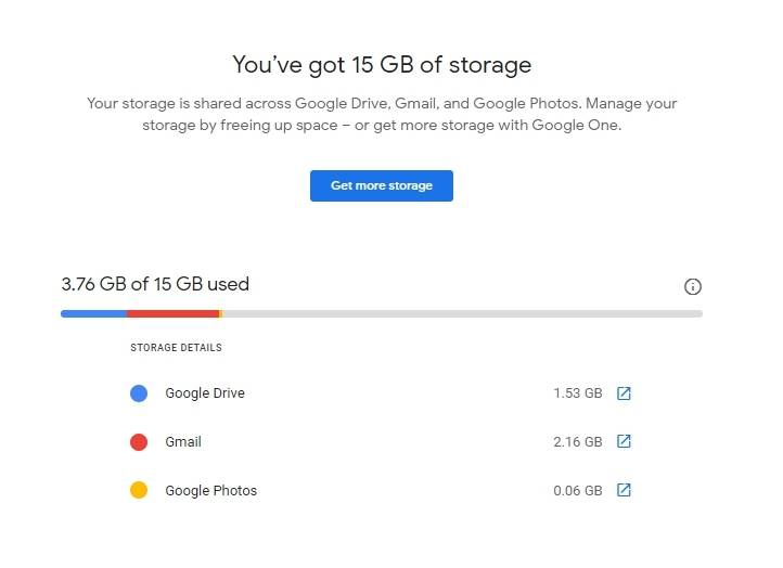 每个 Google 帐户都为每位用户提供 15 GB 的免费存储空间。然后,此存储空间将在包括 Gmail 在内的每个 Google 集成应用程序之间共享。要增加您的 Google 帐户的存储空间,您需要购买 Google 的付费计划之一。