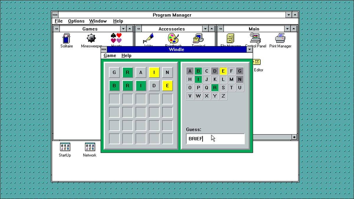 Wordle 有两个大的 Windows 3.1 克隆——Windle和WinQuest。它们都采用扫雷和 奇普挑战的外观和感觉进行设计,因此如果您对当年玩 Microsoft 娱乐包中的这些游戏有美好的回忆,您可以获得这种风格的 Wordle 游戏。