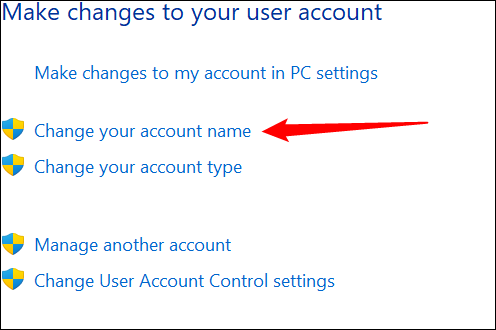 单击列表中的“更改您的帐户名称”。