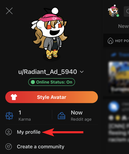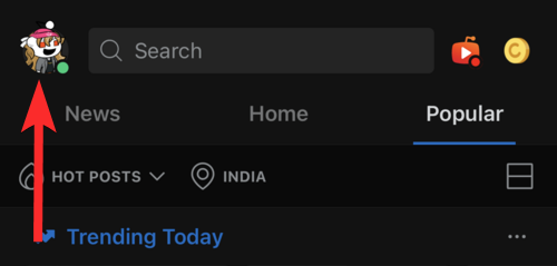 创建帐户后,点击 Reddit 主页左上角附近的个人资料图标。