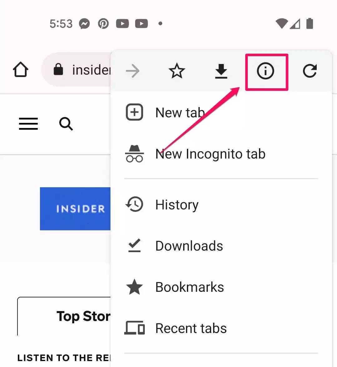 2.在右上角,点击三点菜单,然后点击顶行的i图标。