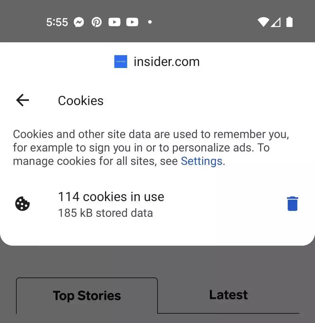 也可以清除与单个网站相关的 cookie,而不是您 Android 设备上存储的所有网站。