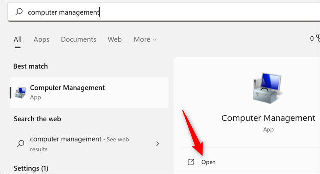 要通过计算机管理工具访问磁盘管理,请单击开始按钮,在搜索栏中键入“计算机管理”,然后按 Enter 或单击“打开”。