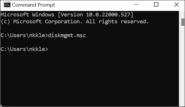 键入 diskmgmt.msc命令提示符或 PowerShell,然后按 Enter。