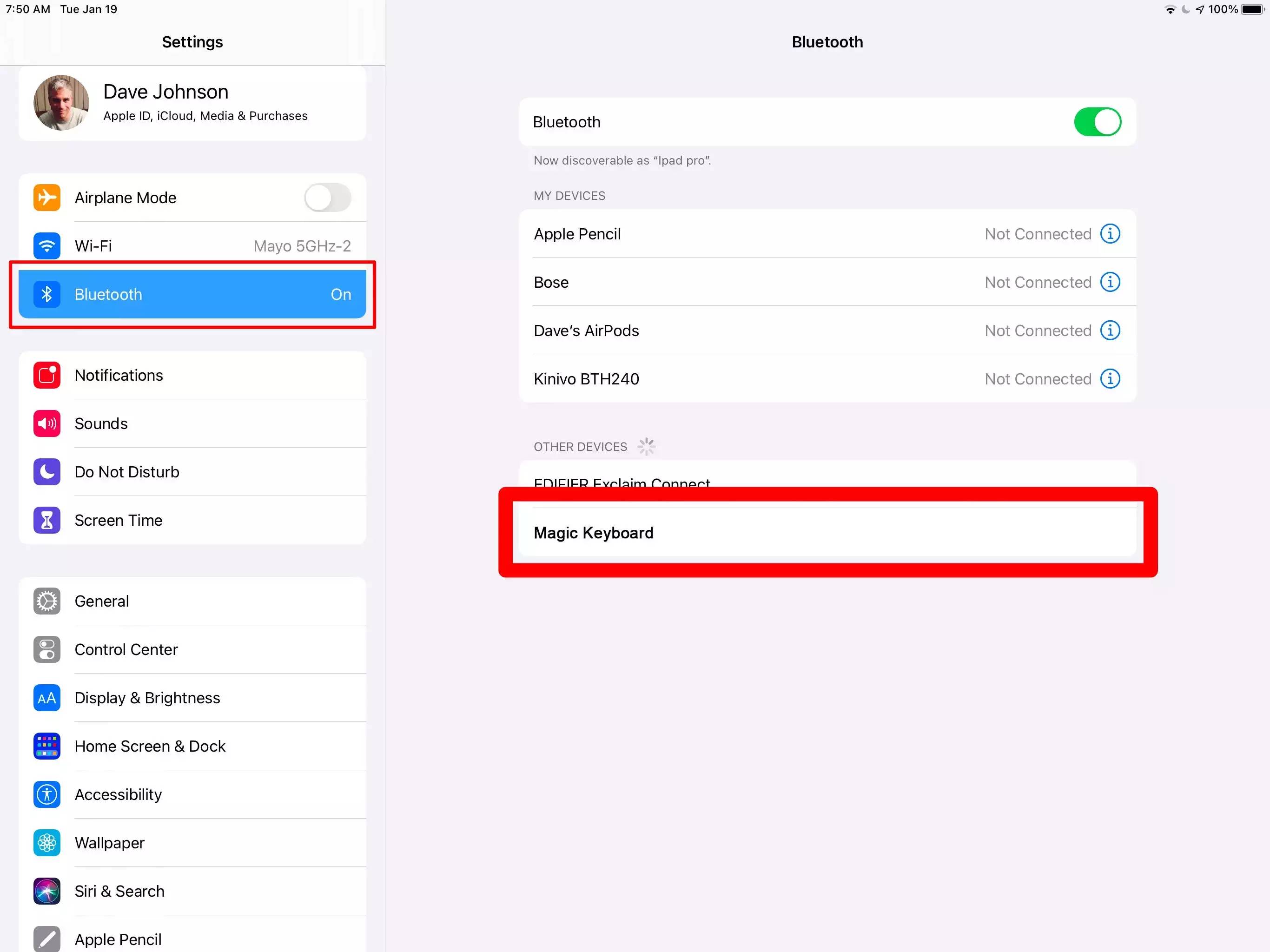 如果键盘是无线的,您可以使用与普通妙控键盘相同的方法进行配对。只需将键盘置于配对模式并打开 iPad 的设置应用程序即可。