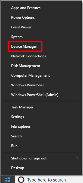 步骤1:右键单击桌面上的Windows图标,然后在提示的“开始”菜单中单击“设备管理器”选项。或者,您也可以打开“运行”窗口,然后键入devmgmt.msc并按Enter键以打开“设备管理器”。