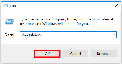 步骤2:打开“运行”窗口,然后键入%appdata%并单击“确定”。