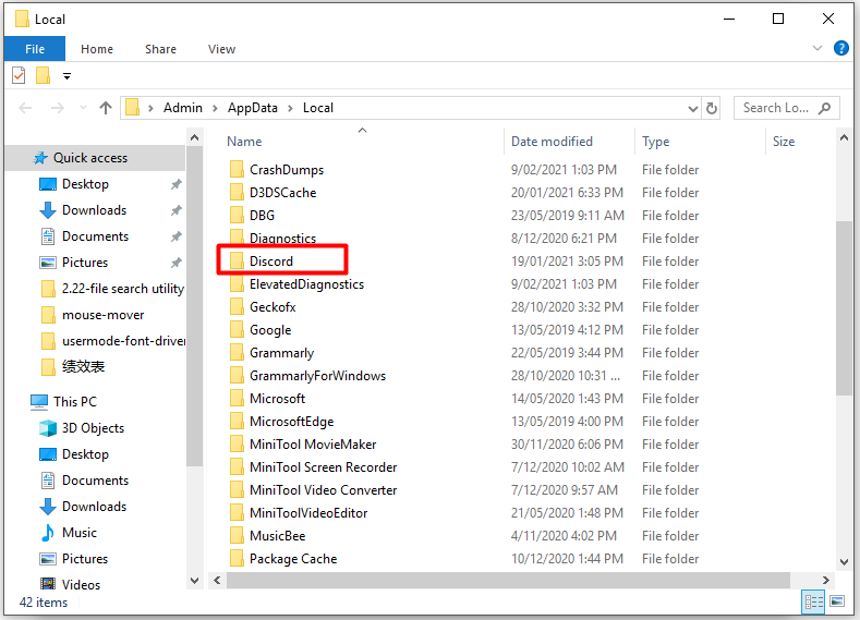 步骤2:在下一个窗口中,双击Discord文件夹将其打开。