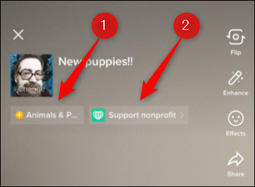 如果您希望观众捐款,您还可以为直播 (1) 和非营利组织 (2) 设置主题。